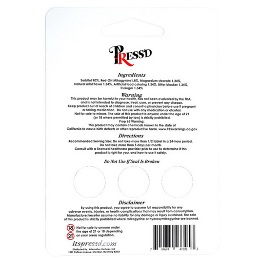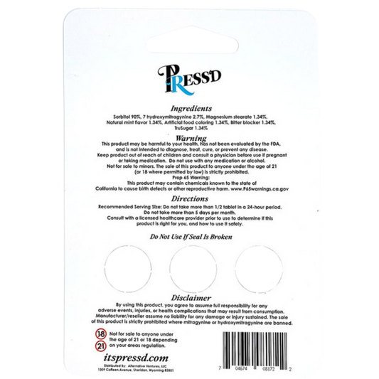 Press'd 7-Hydroxymitragynine Kratom Tablets - 3ct (18mg Each)