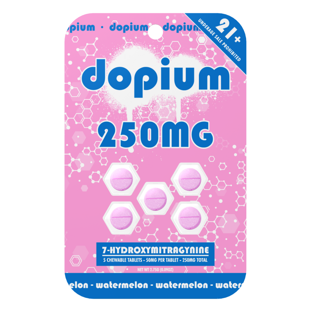 If you're looking for next-level strength in a compact format, the Dopium 7-OH Chewable Kratom Tablets (5ct) are the perfect fit. Each chewable delivers a potent 50mg of 7-Hydroxymitragynine, one of the strongest kratom alkaloids available. That’s a whopping 250mg total per pack, infused into five flavorful, discreet, and easy-to-dose tabs.